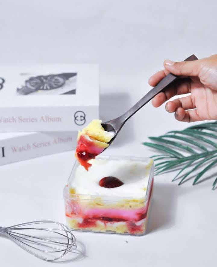 Strawberry Short Cake perpaduan sempurna antara kelembutan sponge cake, lapisan krim lembut yang manisnya pas, serta potongan stroberi segar yang juicy. Rasa manis, asam, dan creamy menyatu seimbang, memberikan sensasi segar di setiap gigitan.